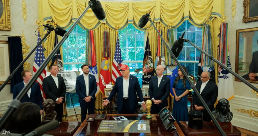وربط بيان الفيفا حساب إنفانتينو على “إنستغرام”، الذي أظهر صورة واحدة لترامب ورئيس الفيفا يبتسمان جنبا إلى جنب مع إبهاميهما لأعلى.
