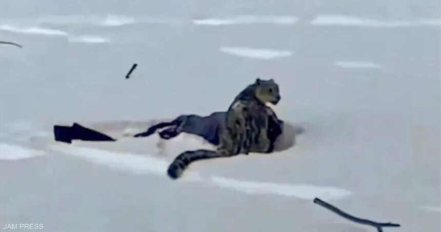 ويظهر مقطع الفيديو امرأة، يُقال إنها اقتربت من النمر لمسافة 3 أمتار تقريبا، ملقاة بلا حراك على الثلج، بينما كان الحيوان المفترس يحوم بالقرب منها بعد الهجوم.