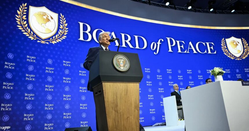 ووقع ترامب وثائق في دافوس، في 23 يناير لإنشاء “مجلس السلام”.