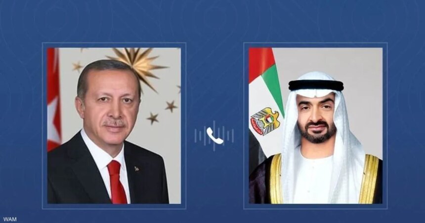 بحث الشيخ محمد بن زايد آل نهيان رئيس دولة الإمارات ونظيره التركي رجب طيب أردوغان، يوم الأحد، خلال اتصال هاتفي علاقات التعاون وسبل تعزيزها بما يخدم المصالح المشتركة للبلدين ويعود بالخير على شعبيهما.