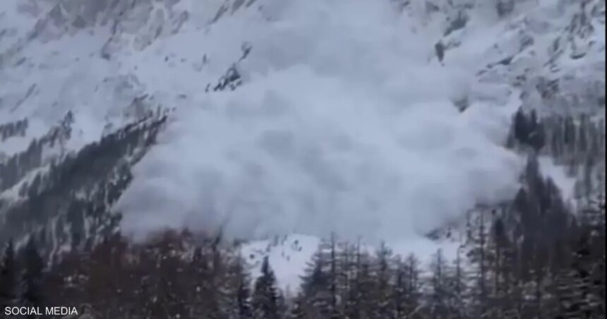 وأظهرت مقاطع فيديو منتشرة على مواقع التواصل الاجتماعي كتلة ثلج ضخمة وهي تنحدر بسرعة من الجبل.