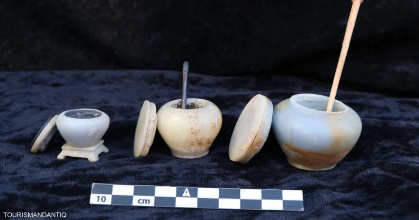 وأضاف أنه تم الكشف أيضاً في الفناء الخارجي للمقابر على مجموعة من الحلي تشمل مرايا من البرونز ومكاحل من الألباستر وعقود من الخرز المختلف الألوان والأشكال، والتمائم المتنوعة التي تعود إلى عصر الدولة الوسطى. ومازالت البعثة المصرية تعمل في الموقع للكشف عن المزيد من المقابر واللقى الأثرية.