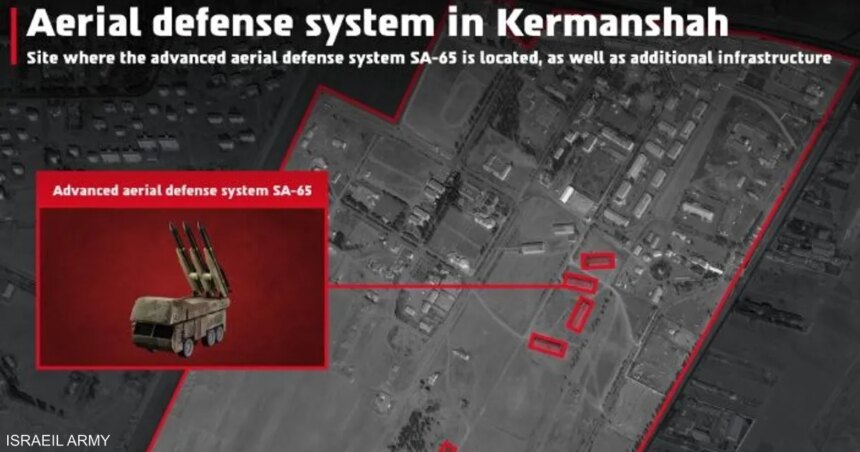 وأضاف البيان: “استهدفت إحدى الضربات منظومة الدفاع الجوي المتقدمة SA-65 المتمركزة في منطقة كرمانشاه غرب إيران”.