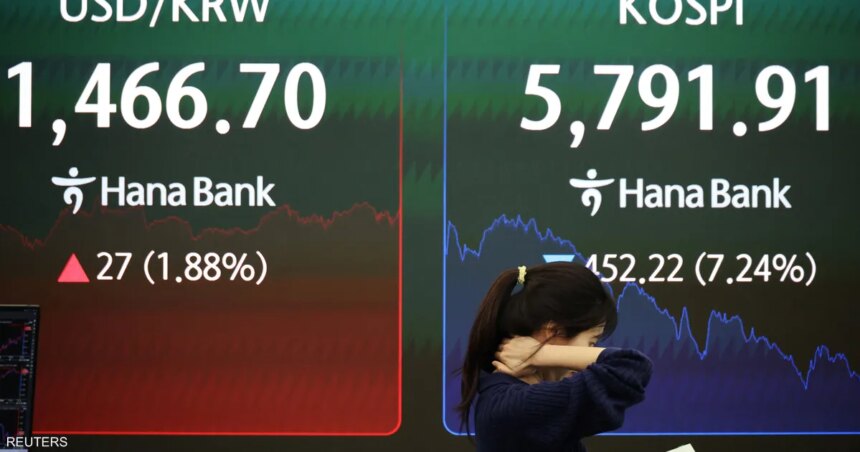 وفي كوريا الجنوبية، هبطت الأسهم بأكثر من 7 بالمئة وشهد مؤشر كوسبي الكوري الجنوبي أسوأ يوم له منذ 19 شهراً وسط عمليات هبوط جماعي في أسواق آسيا.