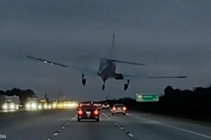 لحظات مرعبة.. هبوط طائرة فوق سيارة على الطريق السريع