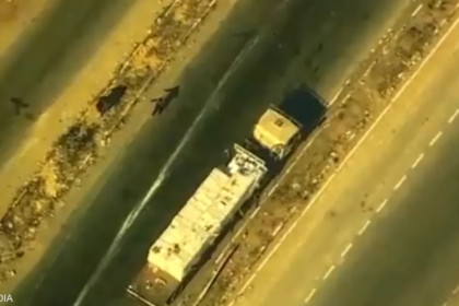 بالفيديو.. درون أميركية ت العالم نيوزلحظة "نهب" شاحنة مساعدات في غزة
