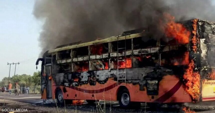وأوردت وكالة “برس تراست أوف إنديا” للأنباء هذه الحصيلة، مشيرة إلى أن سائق الحافلة العالم نيوزدخانا يتصاعد من قسمها الخلفي فتوقف بها على الطريق السريع، لكن سرعان ما التهمتها النيران.