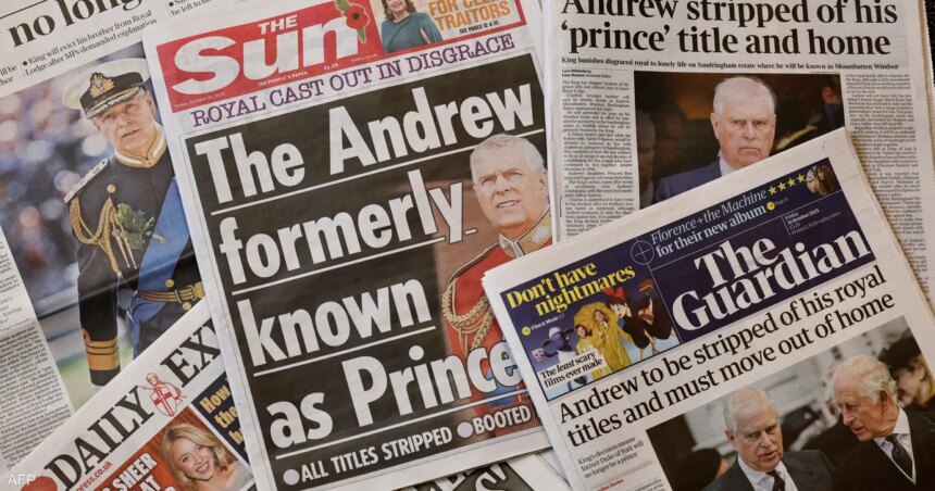 وكان الملك أعلن الخميس تجريد شقيقه الأصغر من ألقابه الملكية، وسط استنكار عام متزايد لارتباط أندرو (65 عاما) برجل المال الأميركي جيفري إبستين المدان بجرائم جنسية، الذي رحل في زنزانته عام 2019 أثناء انتظار المحاكمة.