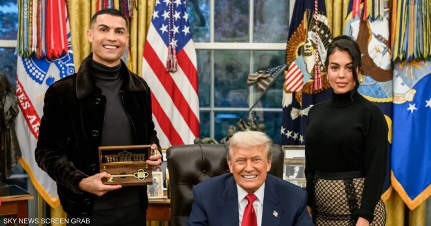 واستقبل ترامب رونالدو وخطيبته جورجينا رودريغيز بحفاوة كبيرة، وخاصهما بجولة داخل أروقة البيت الأبيض، إضافة إلى منحه هدية “المفتاح الذهبي للبيت الأبيض”.