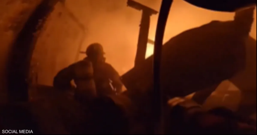 ويظهر الفيديو، الذي التقط من داخل أحد الطوابق التي طالتها ألسنة اللهب، عناصر من فرق الإطفاء وسط سحب كثيفة من الدخان واللهب، وهم يكافحون وسط ظروف بالغة الخطورة، محاولين إتقاذ السكان واحتواء الحريق الذي امتد بسرعة كبيرة.