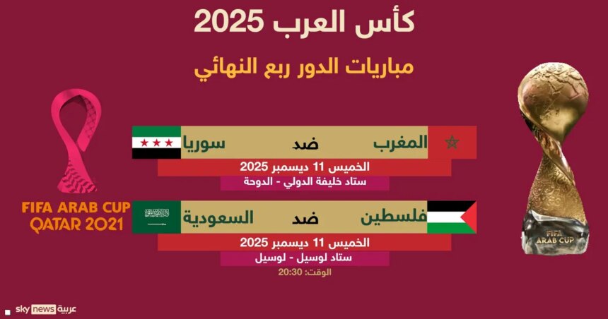 وستجري مساء اليوم الخميس مواجهتان تجمع الأولى منتخبي المغرب وسوريا، فيما تجمع الثانية، منتخبي السعودية وفلسطين.