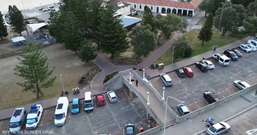 وأظهرت اللقطات اللحظات الأخيرة لأحد المنفذين، حيث سقط صريعا على جسر، بعد أن أصابته طلقات القناصين الأستراليين.