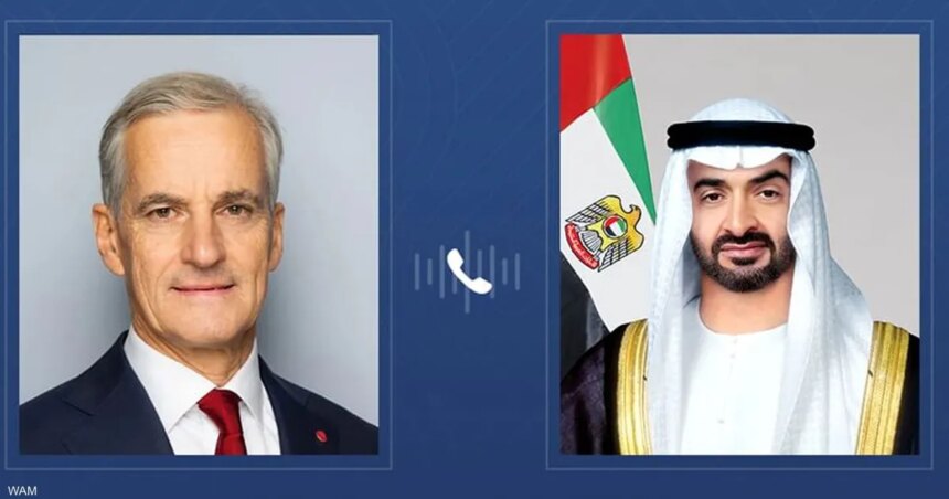 وبحث الشيخ محمد بن زايد ورئيس وزراء النرويج خلال الاتصال “تعزيز التعاون والعمل المشترك بين البلدين في مختلف المجالات خاصة الاقتصادية والاستثمارية والتنموية التي تخدم مصالحهما المشتركة وتعزز رؤية البلدين تجاه التنمية والازدهار”، حسبما ذكرت وكالة الأنباء الإماراتية “وام”.