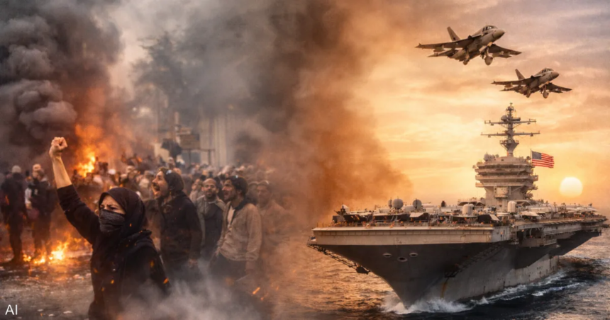 قال ترامب إن “القوة الضاربة” الأميركية في طريقها إلى الشرق الأوسط، إلا أن خبراء حللوا الخطوة على أنها وسيلة لرفع منسوب الضغط إلى أقصى حد ممكن، وإيصال رسالة مفادها أن الضعف الداخلي الإيراني لن يمر بلا استثمار سياسي.