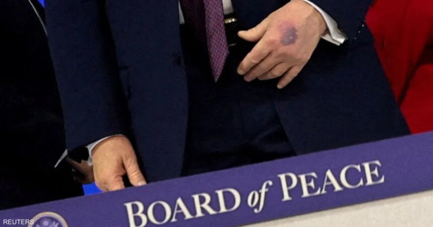 وظهر الرئيس الأميركي مجددا وهو يعاني من كدمة زرقاء واضحة في يده اليسرى، امتدت من مفصل الإصبع الأوسط وصولًا إلى قاعدة الإبهام.