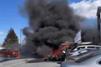 فيديو.. تحطم طائرة بموقف سيارات قرب مطار بنسلفانيا