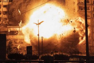 وأظهرت المشاهد التلفزيونية كرات نار وأعمدة دخان ترتفع من مركز…