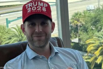 وظهر إريك ترامب، أحد أبناء الرئيس، يرتدي القبعة…