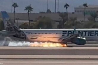 بالفيديو.. نيران تشتعل أسفل طائرة أثناء هبوطها