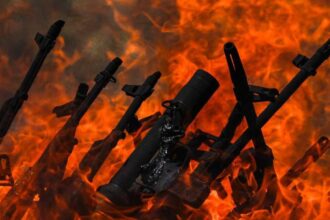 فيديو.. مقاتلو الكردستاني "يحرقون أسلحتهم"