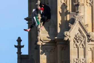 فيديو: متسلق "بيغ بن" ينزل من البرج رافعا علم فلسطين