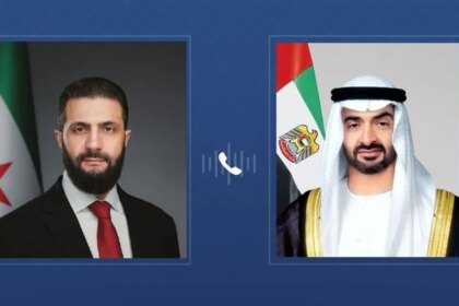 الشيخ محمد بن زايد والشرع يبحثان علاقات البلدين