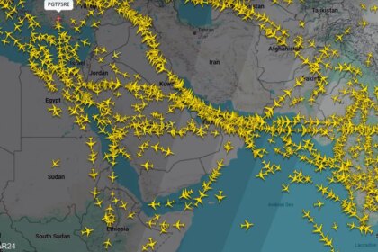 صورة تظهر خلو المجال الجوي الإيراني من حركة الطيران