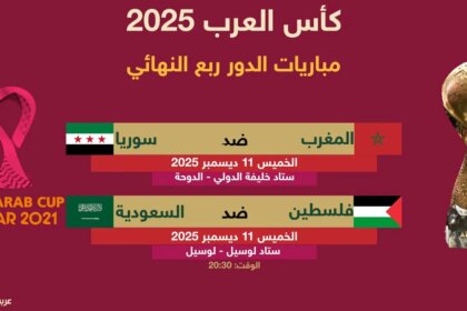 كأس العرب 2025.. المغرب أمام سوريا وفلسطين تواجه السعودية